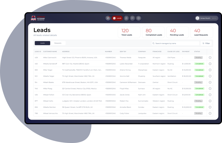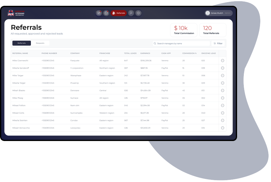 Manage your lead requests, completion and payments through AVR referral system